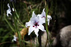 A white flower I found at the Brooklyn Botanical Garden with 3 heart shapes. With the middle heart being hollow.