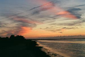 A Long Island sunset captured at Robert Moses Beach with a 35mm Minolta camera.